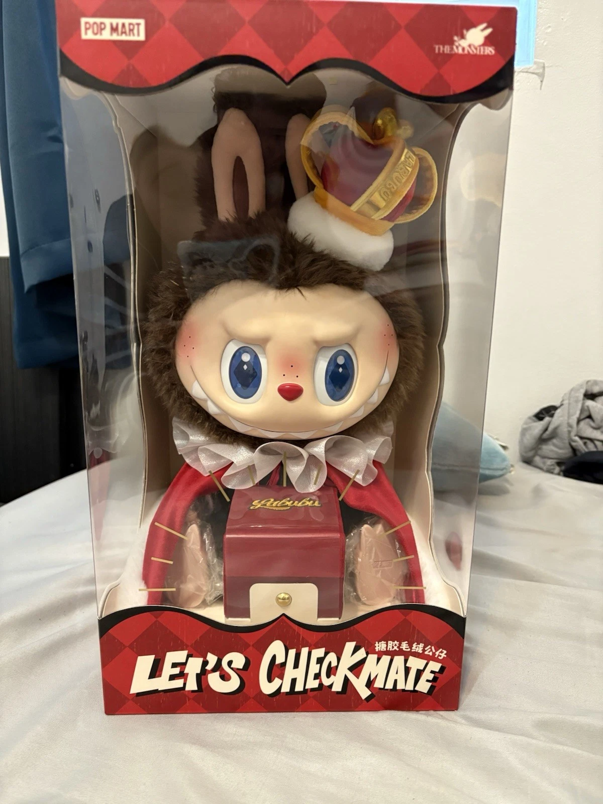 The Let’s Checkmate Labubu came out in Feb 2025 and is 37 cm tall (14.56 inches).