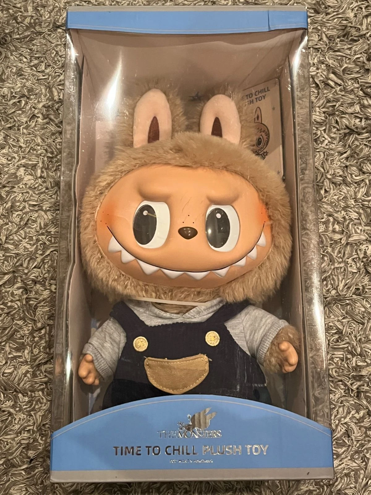 The Labubu Time to Chill came out in October 2022 and is 37 cm tall (14.5 inches).